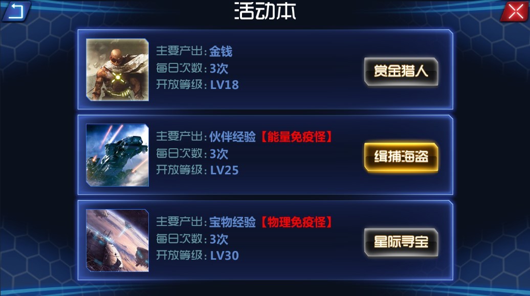 活动本主要产出金币,经验伙伴和经验宝物。随着等级提高依次在18级,25级,30级开放,每日限定3次进入次数。