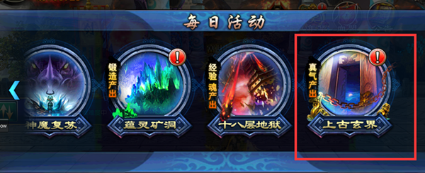(1)刷“每日”内“上古玄界”副本(关卡等级越高可获得的真气越多)