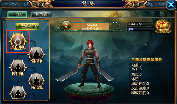 (1)冲脉需要一定数量的真气及金币进入经脉界面后,点击“任脉”