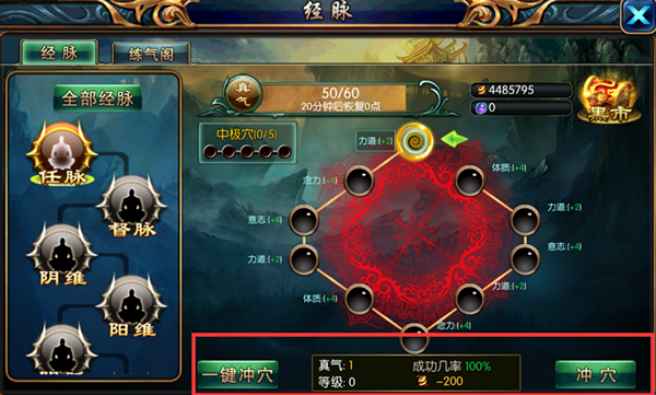 PS: 冲穴成功后将增加角色一定得属性,提高战力
