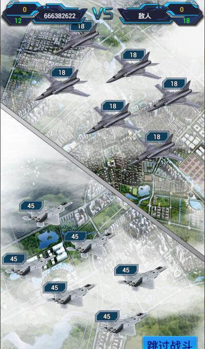 战斗的局面是上下分栏形式,我方队伍在下方,敌方队伍在上方。敌我双方的出战战机为6组,分别为前3后3共6个位置,哪个战机在哪个位置,数量为多少,都是战斗前进行配置的。