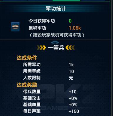 在战场上打仗立功,可以慢慢的从小兵升职到将领。空战帝国争霸为了突显出游戏的真实性,也设定了军功的统计功能,下面我们来跟大家介绍一下游戏中军功的相关内容。