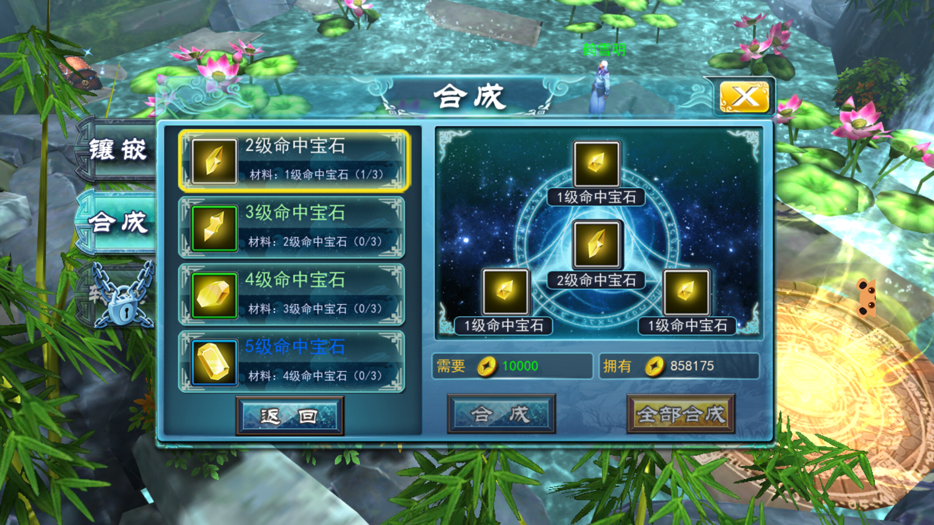消耗一定的金株,可以将三个相同的低等级宝石合成相应一个更高一级的宝石,例如:三个1级命中宝石消耗1万金株可以合成一个2级命中宝石,因此当你的宝石有富余的时候,可以选择去尝试合成宝石。