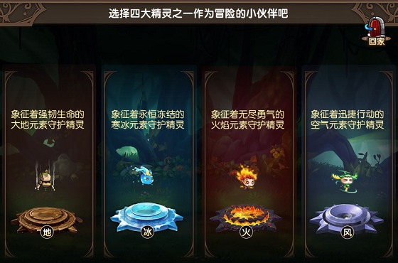 初始的精灵有四个,分别为地、水、火、风四大元素精灵,四大精灵拥有不同的能力与特性,但不必踌躇抉择,因为其他精灵也是可以在游戏中得到的: