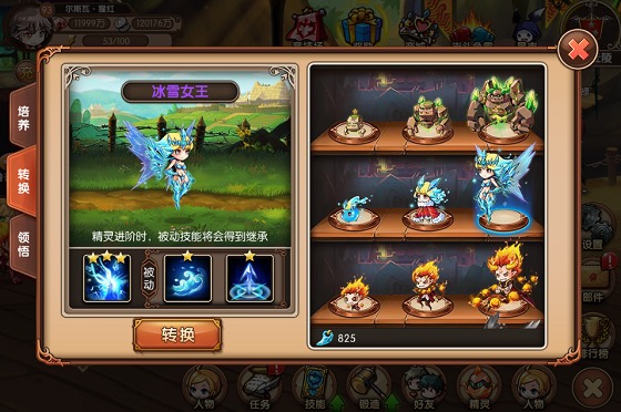 所有精灵都有三个成长阶段,初始精灵可以通过升级和进阶变为中阶、高阶精灵。中高阶精灵拥有更为强大的属性和技能: