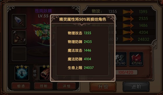 精灵不仅仅能在战斗中给与勇士以援助,而且还能将自身属性值的1/2附加到勇士的属性上,最大限度强化其战力,如果遇到无法通过的难关或是难以战胜的敌人,不妨好好养成一下精灵的属性,想必回报一定不会让你失望。