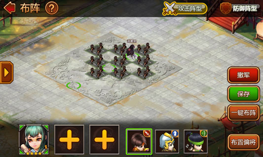 《神将争霸》圆型阵,诸葛亮和黄月英等军师型武将专用阵型。