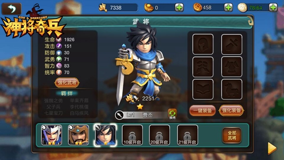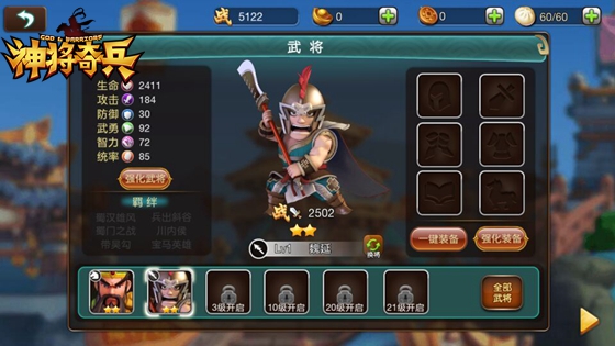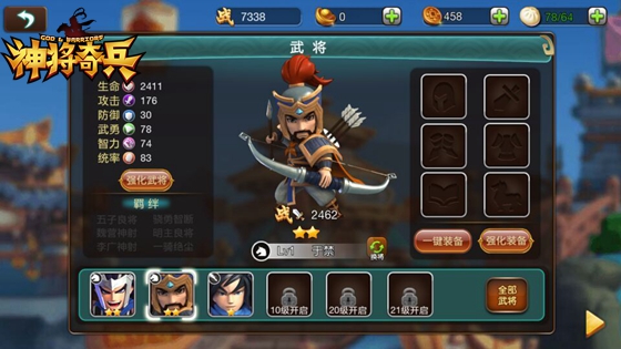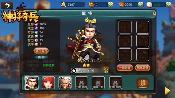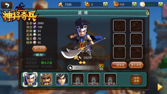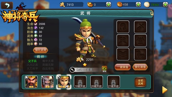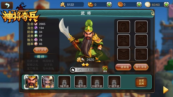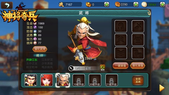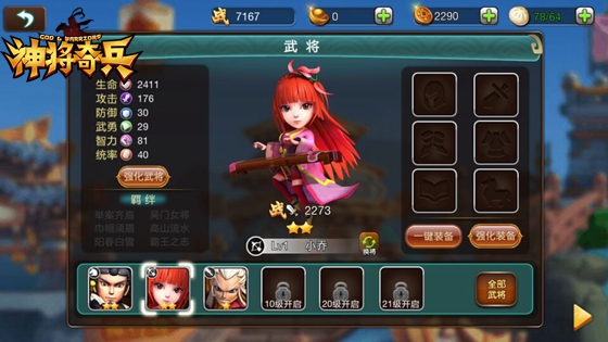 以上就是《神将奇兵》初期系统所给主公们固定武将阵容了,主公们是否还记得小编在文中提到的一个武将“羁绊”属性,想知道它有什么样的作用吗?想知道它有什么样的属性加成吗?那就请主公们亲自去揭开这个神秘的“面纱”吧。