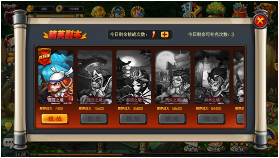 玩家达到20级之后,就可以解锁精英副本。每天第一次免费挑战,并且可以购买3次额外次数。购买价格非常便宜,每日产出的元宝足够购买。
