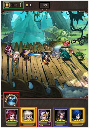 每个小关卡都会有三波敌军,画面最上方,黑框中的“1/3”字样代表您目前在打击第一波敌军。画面最上方的绿色框内是本次战斗的计时器,如果超过时间,则视为进攻方失败。