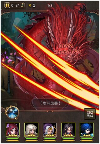 细心的玩家可能已经发现了红框内的一个神秘图标,这个图标就是祖龙技能。在一些战斗中,敌军死亡时会掉出能量球。点击这些能量球就可以收集到祖龙技能中。能量收集满之后,就可以手动点击祖龙技能图标施放祖龙技能了。