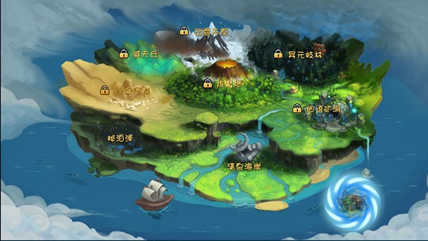 显示所有地图板块的总图,点击各个板块进入相应关卡