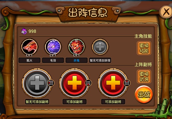 玩家可在该窗口调整出阵的妖怪技能及副将