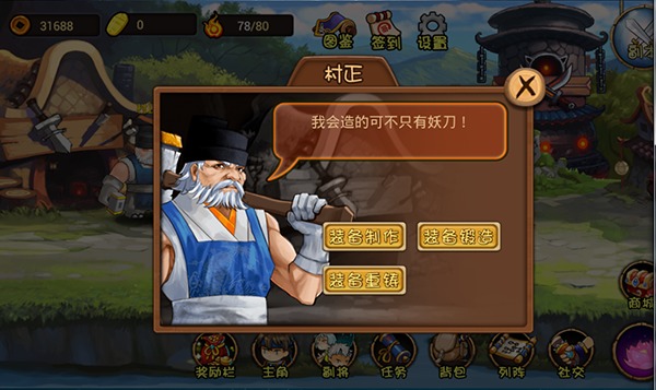装备强度不够,刷不过关卡?找NPC-村正,他会锻造你的装备,提升装备的等级,提高装备属性