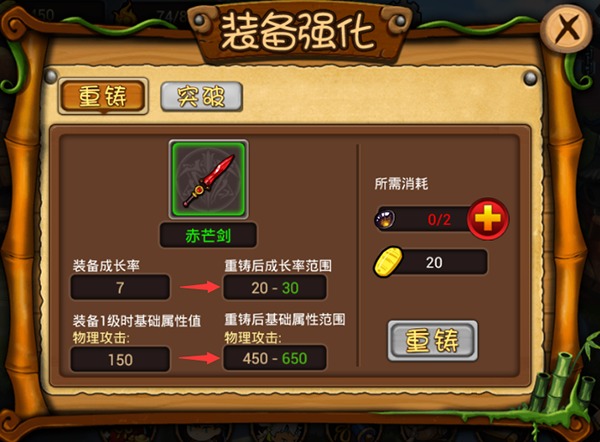 利用碎金石道具,对装备进行重铸,可以刷新装备的基础属性值和装备的成长值(每锻造一次增加的数值)