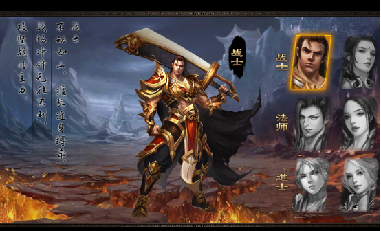 擅长近身物攻的战士,高攻高血,瞬杀擒拿,无所不能,战场绞肉机,够牛逼,够任性。同级的战士HP比另外两个职业高,超高强的防御力,以及不可替代的近身攻击力,无论是越级刷怪,还是打副本、PK都有能有出色的表现。同时,还是群体PK中主力前锋的不二人选。