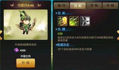 首先先介绍一下兵种。不论是打副本还是刷黄巾,伤害贡献最高的不是任何一个英雄,而是你的小兵。最开始可以先升级弓箭手,因为最开始你会获得左慈这个英雄,左慈在释放技能的时候弓箭手会觉醒,伤害非常高。弓箭手是输出最高的兵种。