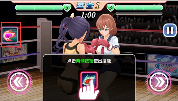 技能:点击两侧按钮就是那个拳头的按钮,使出大招技能。