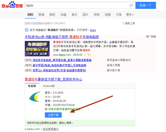 首先现在百度上搜索靠谱助手(kpzs)下载软件,这是《剑侠世界》手游电脑版必备的工具。或直接点击以下网址下载: