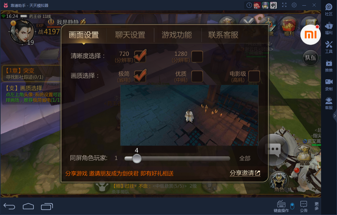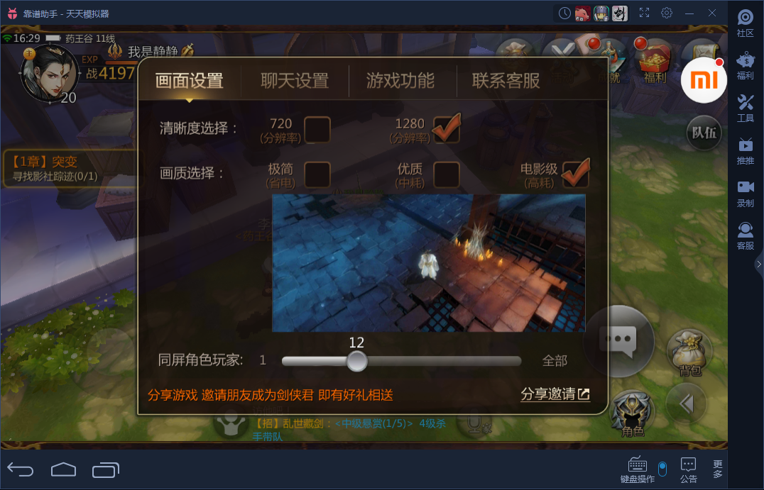 调整完之后画面差距还是蛮大的,感觉头像都变得高清了,玩起来好像大型的端游。