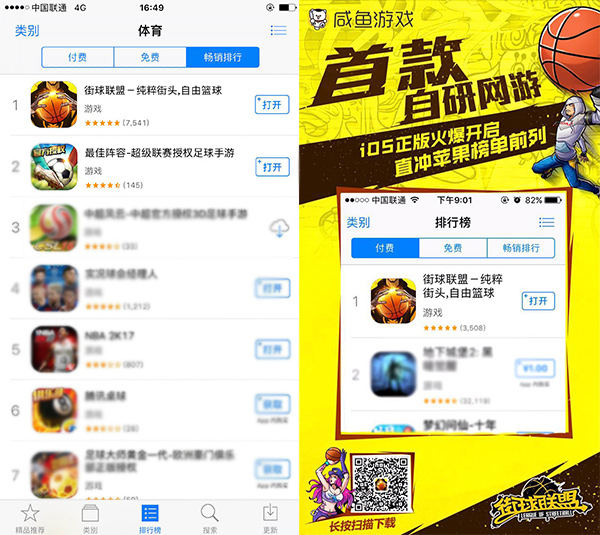 《街球联盟》领跑iOS付费下载榜、体育畅销榜