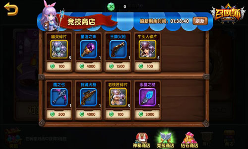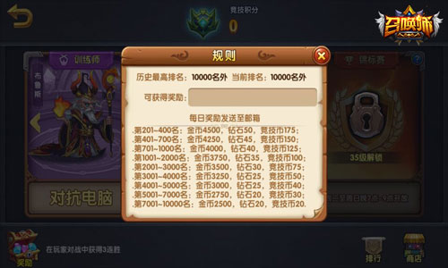 与玩家实时对战获取竞技积分,赢得当日的排名奖励(钻石、金币、竞技币)