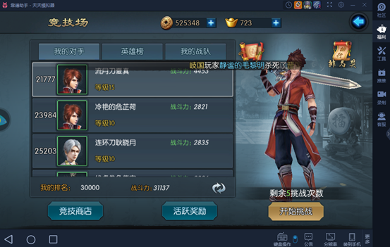 江湖排名其实很简单,选定自己觉得打得过的看,看战力就好了,然后开始挑战,系统会自动帮你操作,获胜后能拿到积分,积分能兑换奖励,每次挑战有一定间隔的时间才能发起第二次挑战。