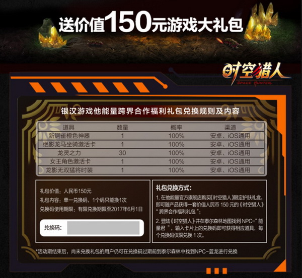 银汉游戏跨界他能量引爆双11力推《时空猎人》定制版