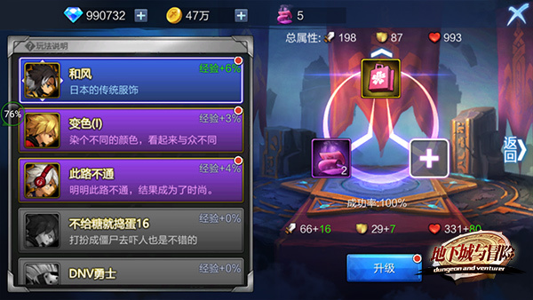 游戏里炫酷美丽的时装也有新属性啦,目前时装系统的新属性是经验加成,获得时装后勇士们进行主线或活动副本时获得的经验会加成变多哟~莉莉再也不用担心我升级困难啦~^ ^