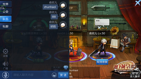 2.组队界面能够更便捷的交流,在组队副本界面依然能够快捷在队伍频道和世界频道交流,队长也能快速提醒其他队友们准备!