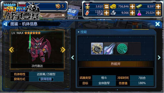 恶魔般的扫荡式攻击,绝不会放过任何一个。艾比安敢达一技能热能斧和二技能光束军刀,对全体敌军造成180%的伤害,且冷却时间皆为7回合。虽说艾比安敢达的三个技能冷却时间都很长,但由于它的基础能力值十分优秀,高攻击力配合着高机动力,一次接一次的普攻就能把你打到手无缚鸡之力,这时再有两个AOE高伤害技能飞速朝你袭来……来自次时代的恶魔之力,你怕了吗?