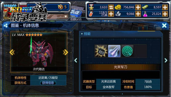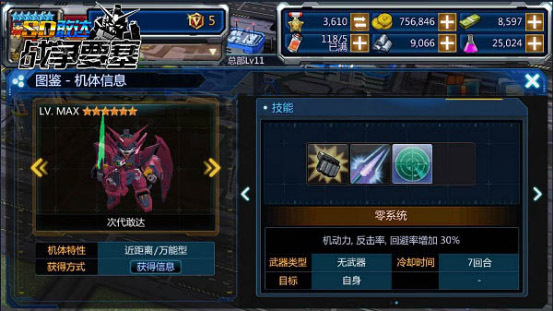 再来看艾比安敢达的技能,艾比安敢达与飞翼敢达零式(光束军刀)的三技能都是零系统,能使自身增加30%的机动力、反击率和回避率,且冷却时间皆为7回合。技能方面两者最大的区别在于,飞翼敢达零式(光束军刀)的一技能和二技能皆为单一范围伤害,而艾比安敢达的一技能和二技能皆为全体AOE技能。